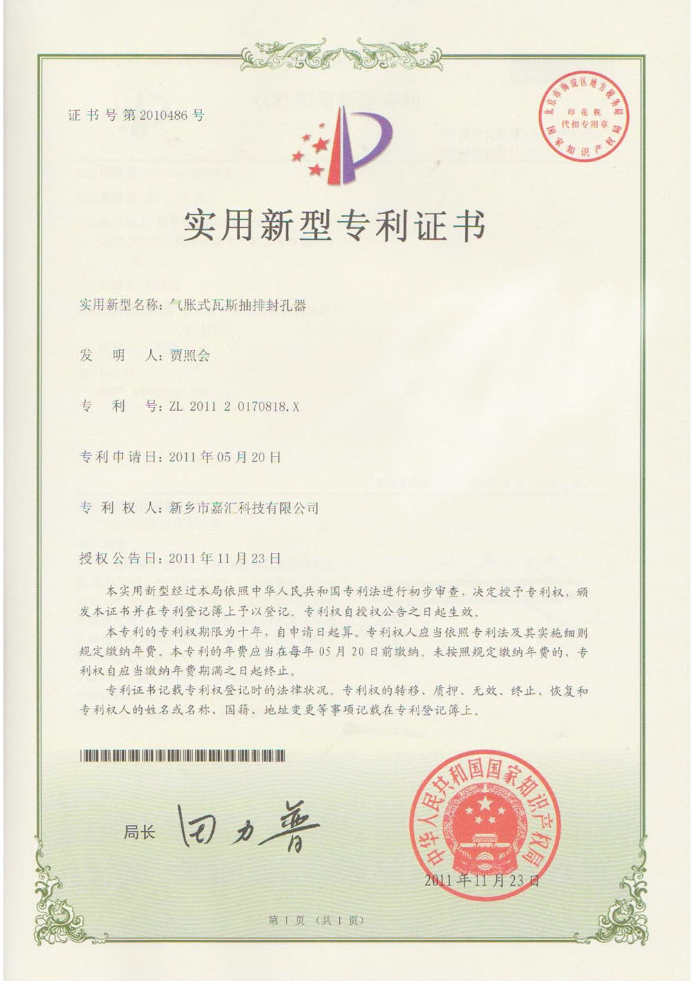 兩堵一注封孔器專利