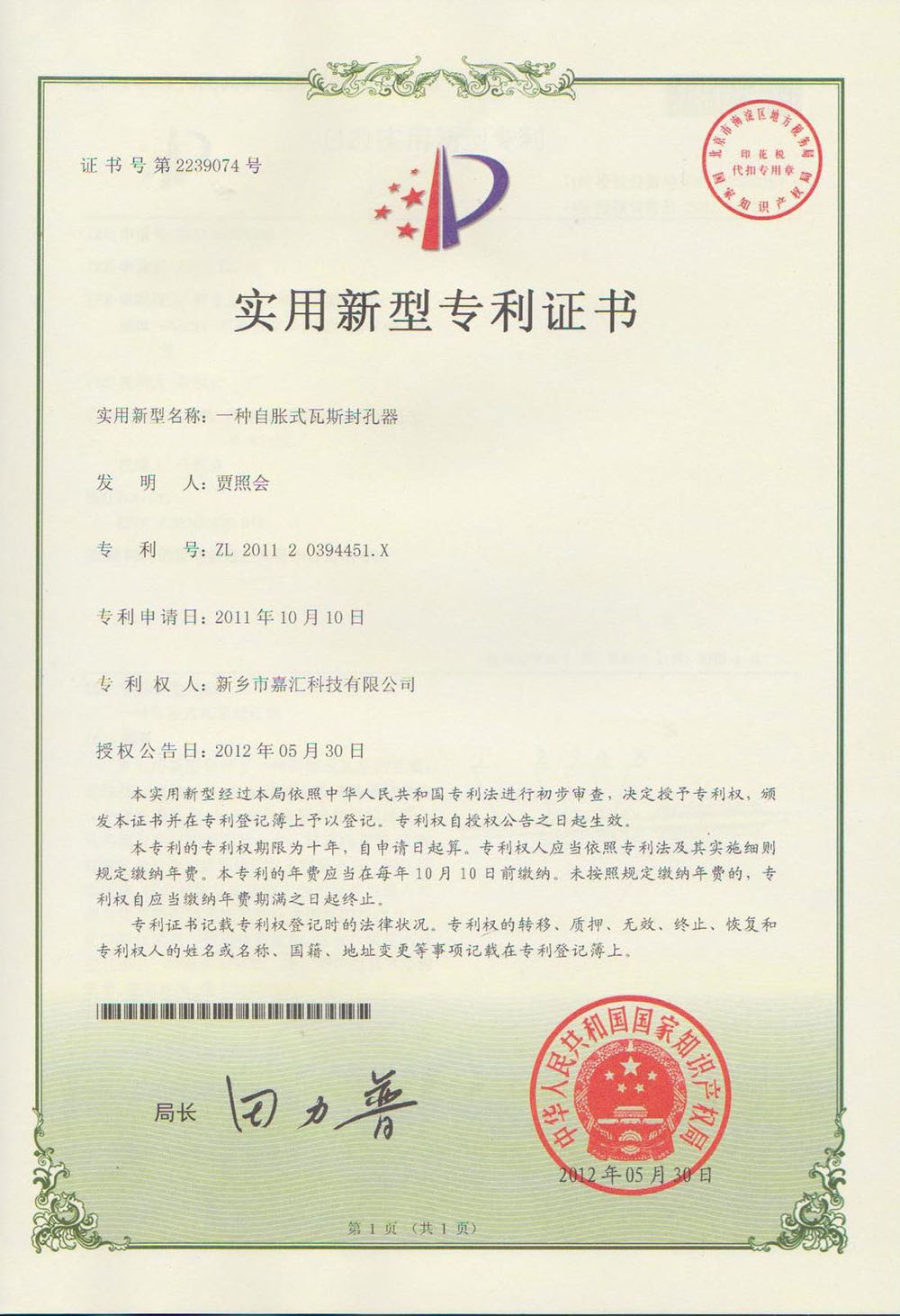 自脹式封孔器專利
